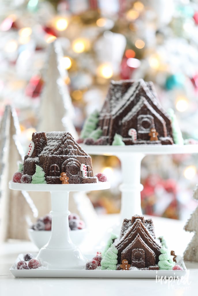I made these festive gingerbread cakes a fews years ago and I still look back at them fondly. I think they turned out so beautiful. And while I made these cakes to eat, you could certainly bake them and use them solely as decor if you’d like. I wouldn’t recommend keeping them for more than one season, but they would be stunning on a holiday buffet.