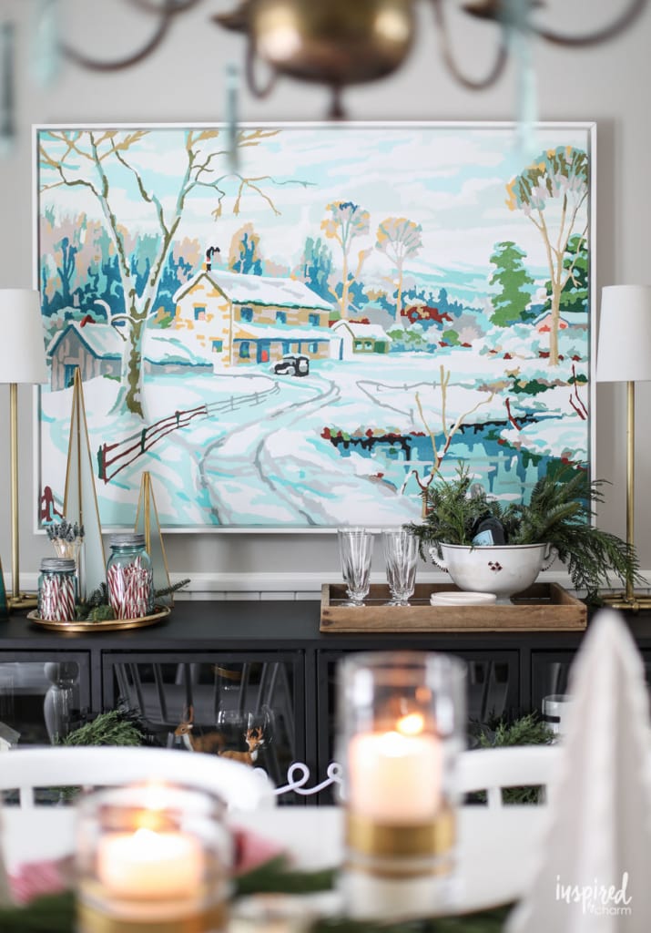 I love me a paint-by-number print (in keeping with my vintage-inspired Christmas theme), so when I saw this piece, I knew I had to have it for this space. I’m crazy about it!